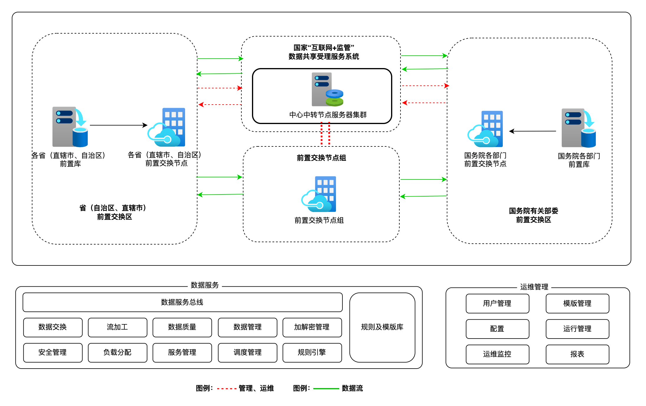 数据服务受理系统是实现与国家、省共享交换平台等各部门之间建设可靠安全的数据传输桥梁。提供对业务系统数据的抽取、转换、整合,并将处理后的数据归集到部门前置库。