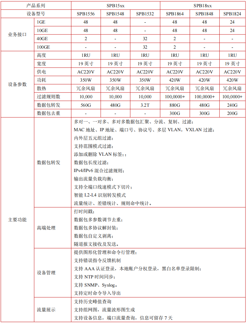 效率,设备适用于网络性能分析、业务质量分析、网络安全分析、大数据平台等应用场景。