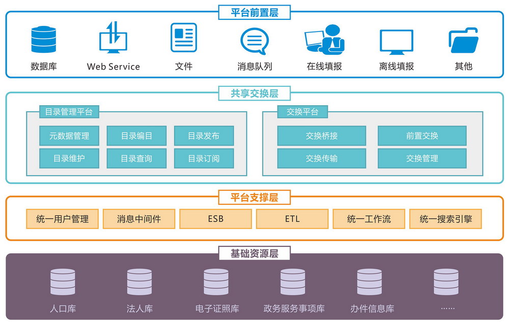 依托A4C数据服务平台,搭建政务服务数据共享平台,使其成为支撑互联网政务服务门户、政务服务管理平台、业务办理系统运行的基础数据平台,包括集中汇聚的政务服务事项库、办件信息库、社会信用等业务信息库和共享利用的人口、法人、地理空间信息、电子证照等基础信息库,以及政务服务数据共享交换的支撑系统。